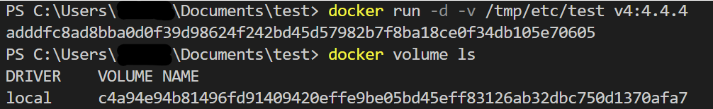 - 로컬에 없는 볼륨 이름을 적으면 볼륨이 새로 생성된다.