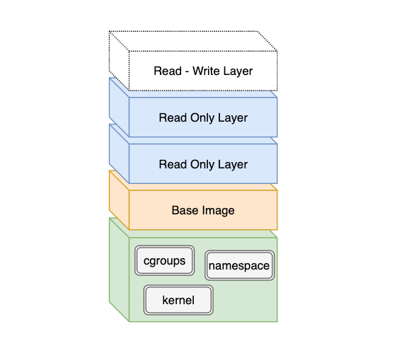 - 컨테이너는 read-only 레이어들을 순서대로 쌓은 다음(=image) 마지막에 writable 레이어를 추가하여 생성/실행된다.