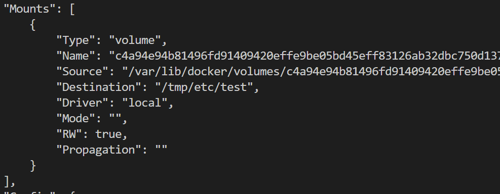 이렇게 설정하여 컨테이너를 실행시키면 docker inspect 로 조회했을때